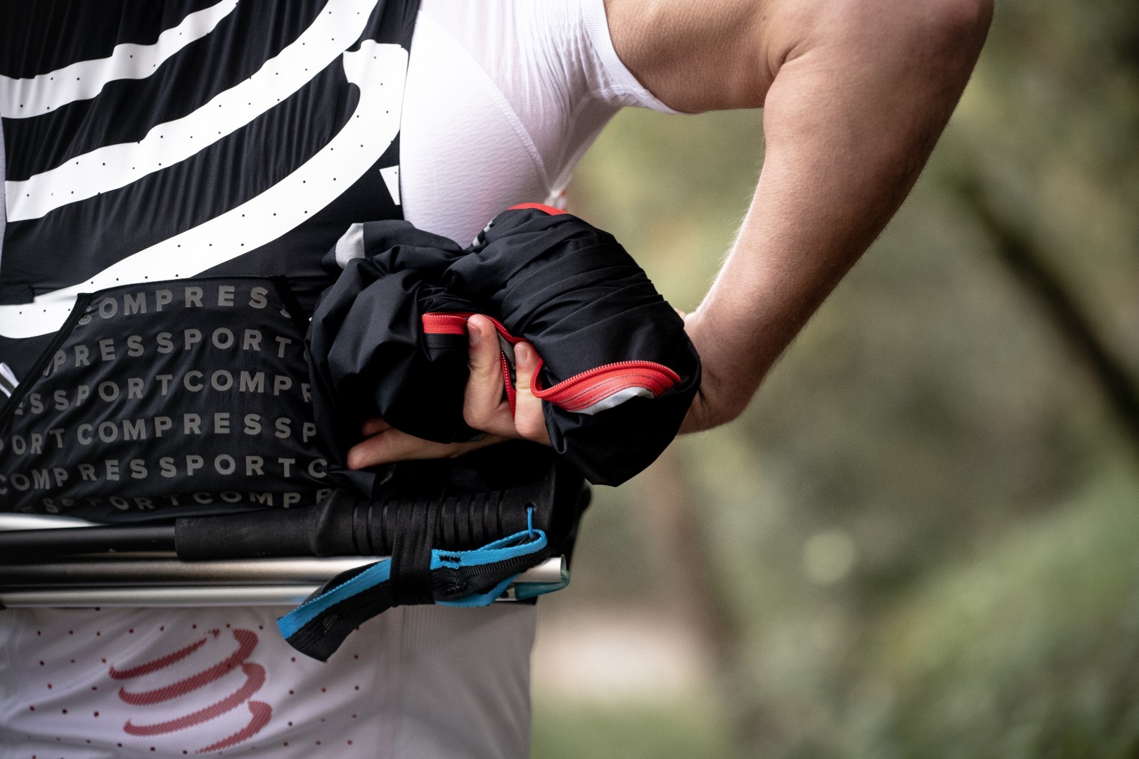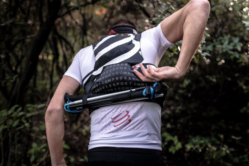 Historicky druhá verze běžecké vesty od značky COMPRESSPORT byla vyvíjena s elitními trailovými běžci, kteří mají na svých kontech pódiová umístění v nejznámějším ultra-trailovém závodě UTMB. Je navržena právě tak, aby během tohoto 170kilometrového závodu bylo možné mít při sobě vše potřebné. Vesta váží pouze 80 gramů! V přední části jsou na každé straně dvě kapsy na 500ml ergoflasky, ve spodní části zad je pak k dispozici kapsa k horizontálnímu umístění 600ml ergoflasku, to vše s maximální přístupností při samotném běhu.